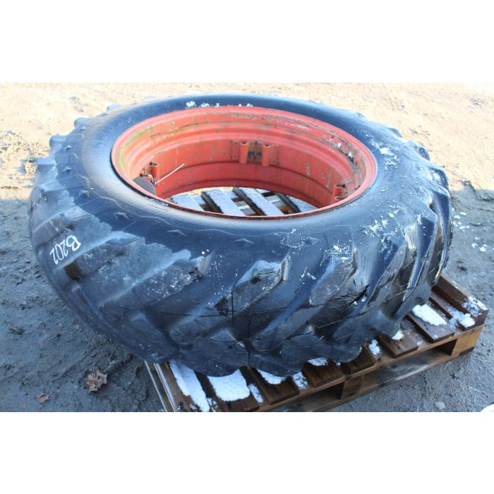 Traktorfälg säljes. Däck är påmonterat men punkterat, se bilder för anmärkningen. Däckets dimension 16,9/14 R34