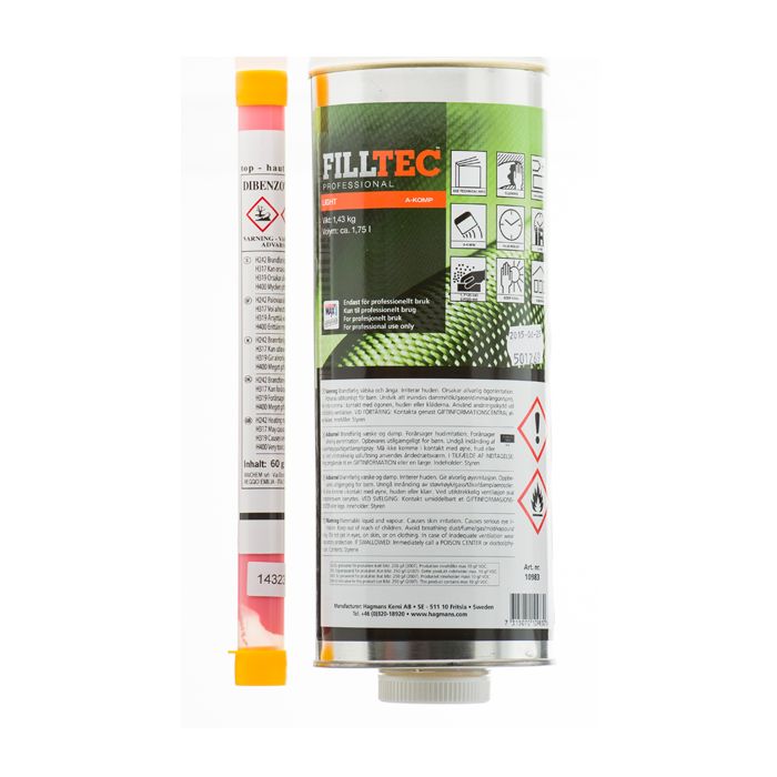 2K lättvikts-polyesterspackel med mycket bra slipegenskaper utvecklat för att fylla bucklor och skador på karosseridelar gjorda av stål, förzinkat stål, aluminium och mindre repor i plast. Endast för professionellt bruk