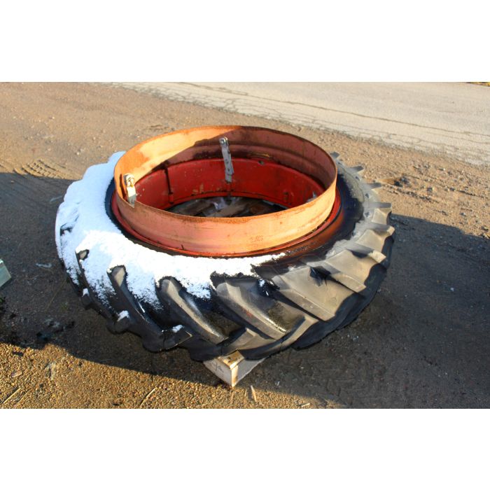 Hjul, däck och fälg inkklusive dubbelmontage med spännare. Märke: Goodyear Däckdimension: 13,6-3830% mönster kvar, torrsprickor förekommer.
