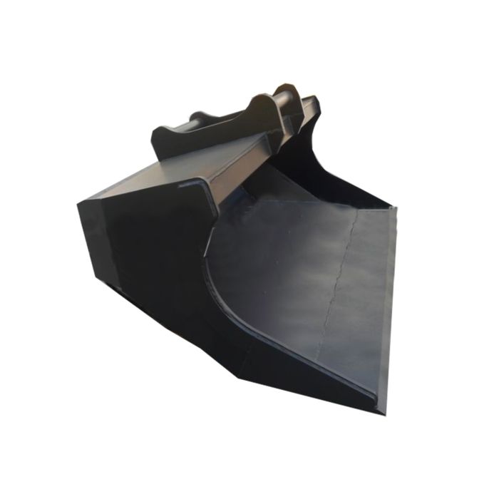 Planeringsskopa med fasade hörn för optimal framkomlighet vid kanter och trånga utrymmen. Den koniska skopkroppen underlättar fyllning, medan den anpassade 16-gradersvinkeln mellan fäste och botten gör det enkelt att rotera skopan utan att tappa material.
