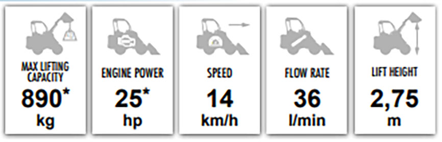 Maskinen utmärker sig med sina kompakta mått och låga driftskostnader. MultiOne erbjuder även ett omfattande sortiment av nästan 200 olika redskap och tillbehör för sina kompaktlastare och redskapsbärare.
