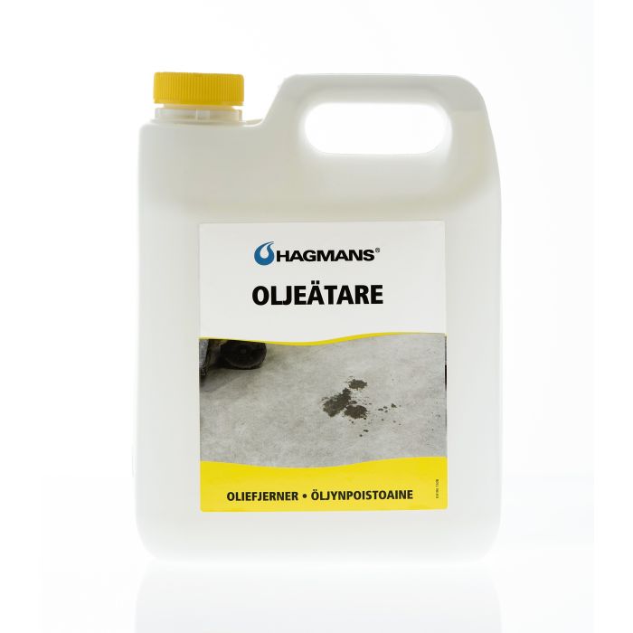 Hagmans Oljeätare används före målning eller behandling av betonggolv. Tar skonsamt och effektivt bort problematiska oljerester.