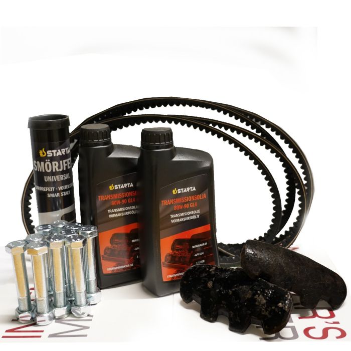 Det krävs att man sprutar in fett på angivna platser och efterdrar alla skruvar (även spännskruvarna i remskivan) och spänner remmar före användning och efter en timmes körning, dessa platser är väl utmärkta med skyltar för att du inte skall glömma någon del. Proceduren och kontrollen upprepas var åttonde körtimma.