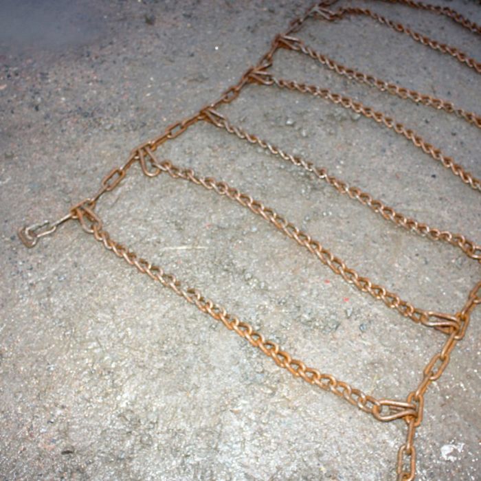Snökedjan har suttit på ett traktordäck med dimensionen: 11,00-28 bak