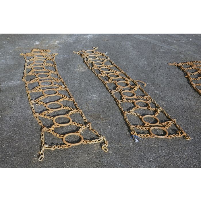 Snökedjor med broddade ringar, broddarna är slitna men kedjorna är i fint skick.