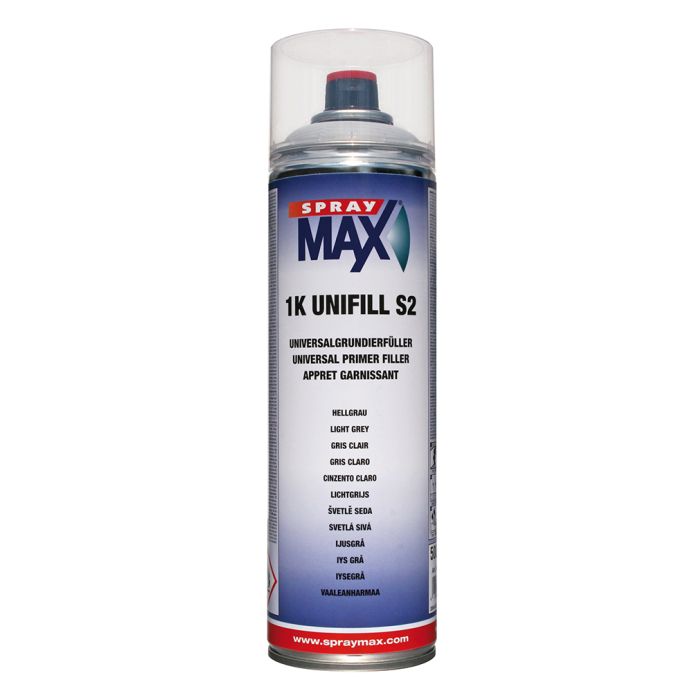 Spraymax 1K Unifill 500 ml. Primer och filler i en produkt. För stål, förzinkat stål och olika plaster. Bra rostskydd, hög skiktuppbyggnad och kort torktid.