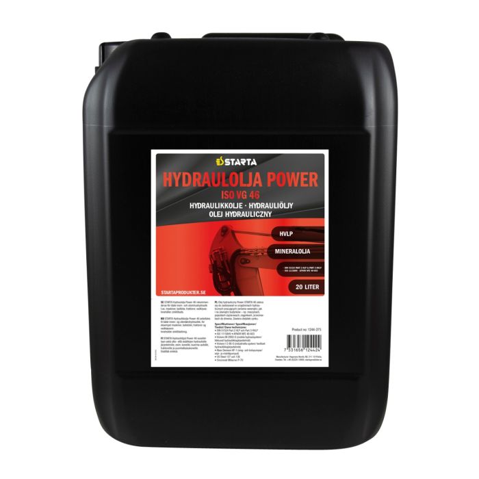 STARTA Hydraulolja Power 46 HVLP passar alla typer av hydraul utrustningar, men speciellt de som arbetar under hård belastning, med högt tryck och höga pumphastigheter.