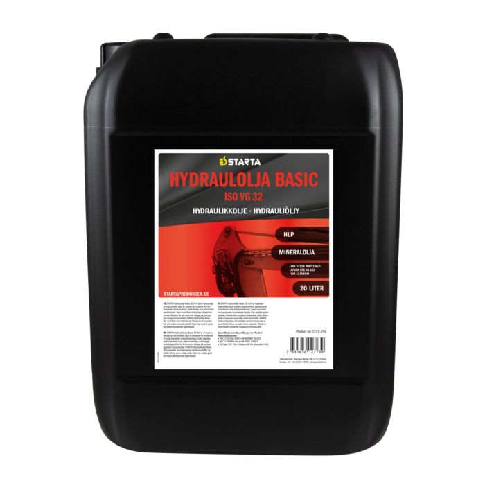 STARTA Hydraulolja Basic 32 HLP är en hydraulolja av hög kvalitet, oljan är avsedd för moderat till hårt belastade hydraulsystem i både fordon och industriella applikationer.