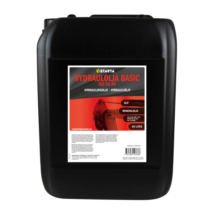 STARTA Hydraulolja Basic 46 HLP är en hydraulolja av hög kvalitet, oljan är avsedd för moderat till hårt belastade hydraulsystem i både fordon och industriella applikationer.