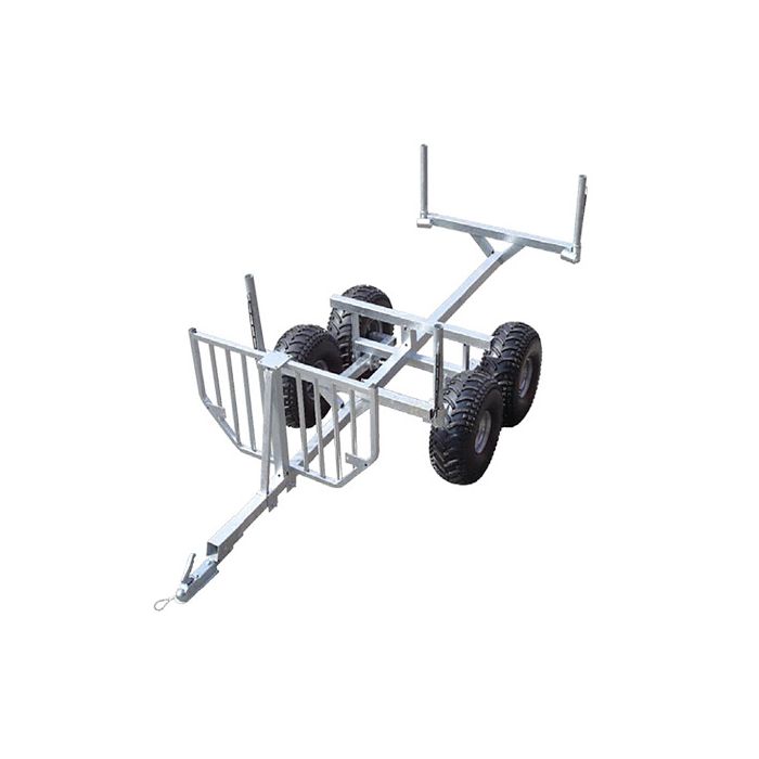 Har plant lastplan och vid lossning lyfter man upp stöttorna och placerar horisontellt i hylsor. Enkelt att rulla av virket och få bort lasten en bit från vagnen. Stöttorna är i båda lägen låsta med gummistroppar. Det hjälper till att lägesbestämma stöttorna och minskar lite på skrammel. Passerar hindren bra och rullar lätt då den har osymmettrisk pendelboggi med frirullande däck. Konstruktionen ger en markfrigång på hela 385 mm. Roterande drag, varmförzinkad och C.E märkt.